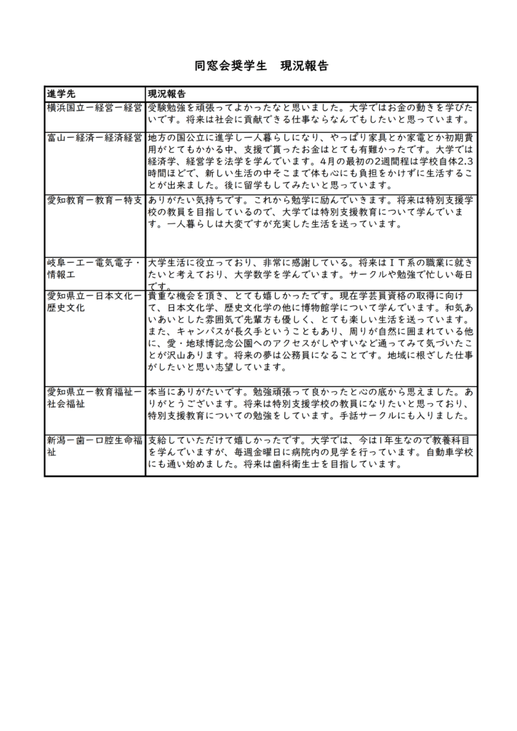 後日、現況報告も頂きましたので掲載をさせて頂きます、2025年度も在校生の皆様のエントリーをお待ちしております。
